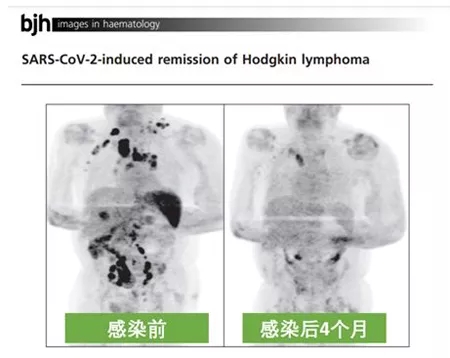 放在一般的故事里,可能這位大哥已經(jīng)領(lǐng)盒飯了,誰(shuí)知他因新冠住院住了11天,癥狀緩解后,就被送家中休養(yǎng)了。這期間他沒(méi)有用任何免疫相關(guān)的藥物。過(guò)了四個(gè)月,他回醫(yī)院復(fù)查淋巴瘤。沒(méi)想到成了見(jiàn)證奇跡的時(shí)刻:PET-CT顯示,他的腫瘤幾乎完全消失了,而且相關(guān)的腫瘤標(biāo)記物也下降了90%以上!