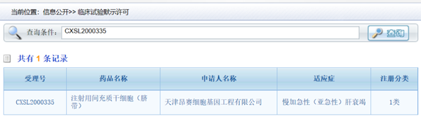 剛剛,從國家食品藥品監(jiān)督管理總局藥品審評中心官網(wǎng)獲悉,天津昂賽細胞基因工程有限公司干細胞新藥臨床試驗申請(IND)獲得默示許可,適應(yīng)癥為慢加急性(亞急性)肝衰竭。
