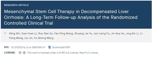近日,王福生院士團(tuán)隊(duì)在國(guó)際肝病學(xué)雜志(Hepatology International)發(fā)表的研究結(jié)果(預(yù)印本)顯示,臍帶干細(xì)胞顯著改善了失代償性肝硬化的肝功能及長(zhǎng)期生存率。