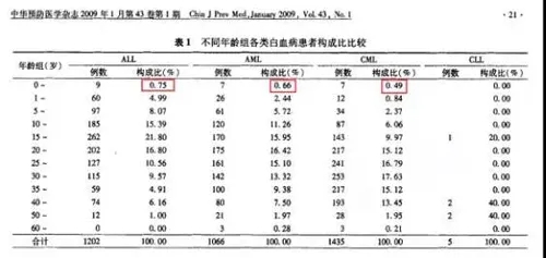 在高素青、程良紅、盧亮等人發(fā)表的這篇文獻(xiàn)里,0-1歲白血病患兒僅占白血病患者的0.62%,先天性白血病是少數(shù)存在的。