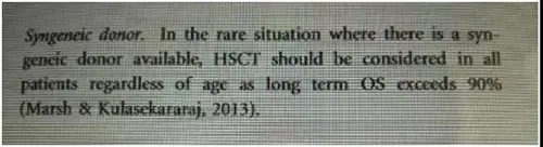 因此,最新英國血液標(biāo)準(zhǔn)委員會(huì)推薦,獲得性再生障礙性貧血患者只要有同基因供者,不論年齡均考慮同基因移植,因?yàn)殚L生存率超過90%。