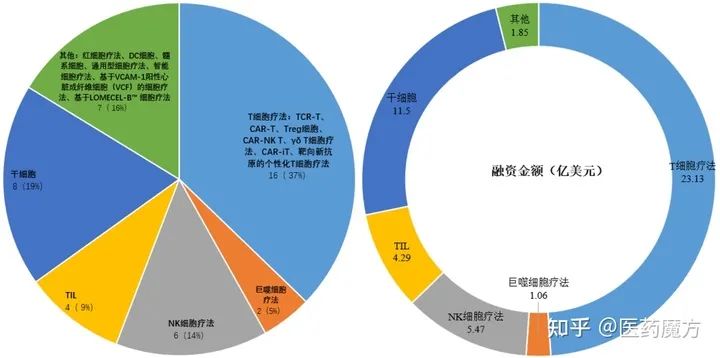 醫(yī)藥魔方Pharma Invest數(shù)據(jù)庫顯示,2021 H1全球細胞療法領(lǐng)域涉及融資約60起(包括IPO融資),總金額超73億美元,其中中國超20億美元。A輪融資數(shù)占比最高(28%)。所涉及的技術(shù),包括熱門的CAR-T、CAR-NKT等,也包括iPSC細胞療法。