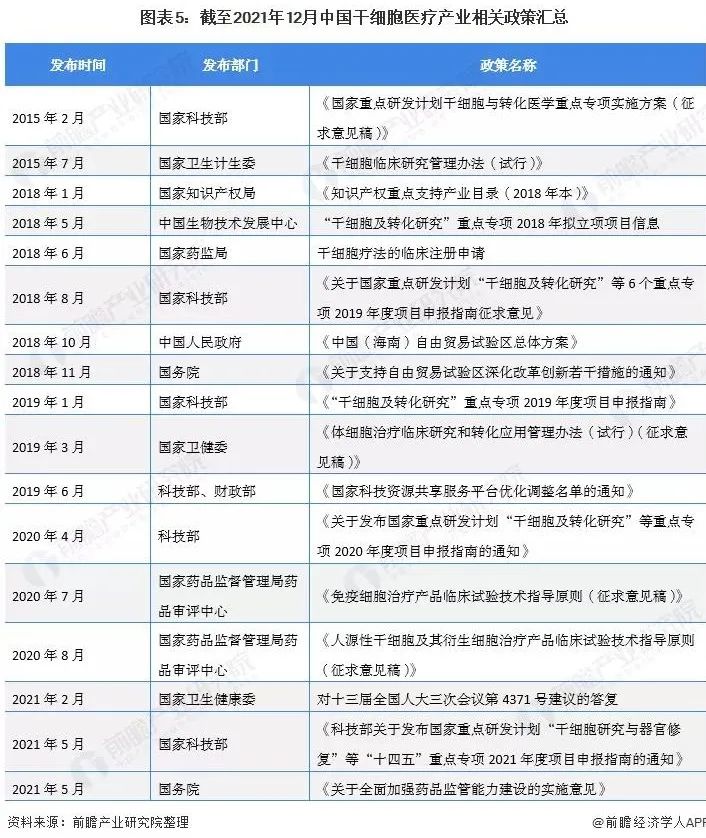 進入“十四五”時期以來,政策紅利繼續(xù)加持。2021年初國家重點研發(fā)計劃“十四五”總體布局形成,將“干細胞研究與器官修復”納入“十四五”第一批啟動國家研發(fā)計劃的6個重點專項,持續(xù)促進干細胞研究的規(guī)范和臨床應用的轉化。