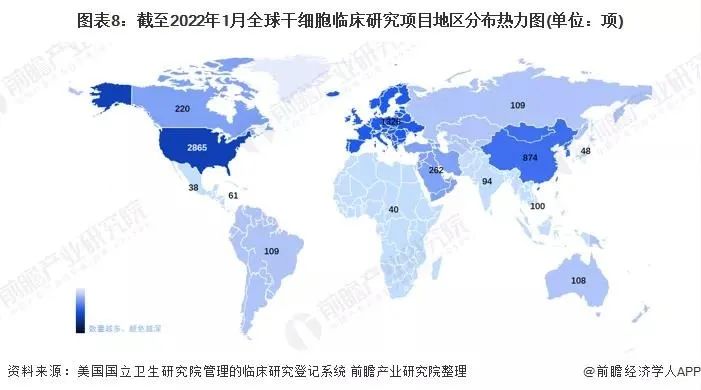 根據美國國立衛(wèi)生研究院管理的臨床研究登記系統(tǒng)(Clinicaltrials.gov)數據顯示,截至2022年1月4日,全球登記的干細胞臨床研究項目共計6065項。