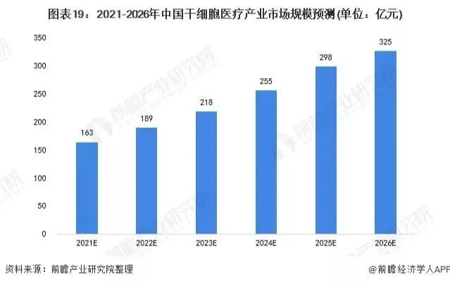 干細胞醫(yī)療產業(yè)鏈的發(fā)展涉及干細胞存儲、干細胞藥物開發(fā)、干細胞治療,未來三個方向的發(fā)展空間均巨大。根據QYResearch的研究數據,2020-2026年,中國干細胞醫(yī)療產業(yè)市場規(guī)模復合增長率約為15%,未來幾年,中國干細胞醫(yī)療產業(yè)市場規(guī)模在全球市場規(guī)模中的占比將進一步上漲。前瞻保守估計,到2026年,中國干細胞醫(yī)療產業(yè)市場規(guī)模將達到325億元。