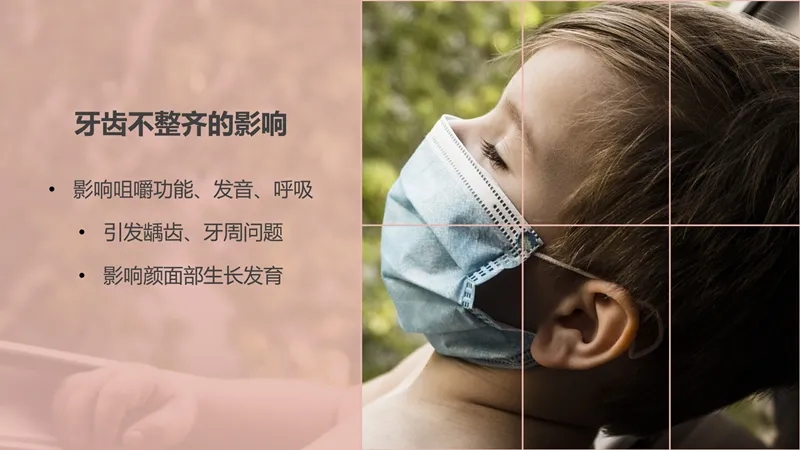 3)影響顏面部的生長發(fā)育,牙齒在整個顏面部的生長發(fā)育過程當中起著非常重要的作用。現(xiàn)在疫情期間大家都佩戴口罩,那么就有了“口罩整容術(shù)”這個詞。