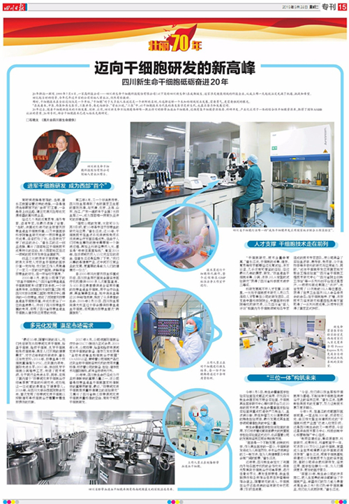 公司大事件 2019--09-27 邁向干細胞研發(fā)的新高峰,四川新生命干細胞砥礪奮進20年 20年彈指一揮間。1999年7月8日,一家高科技公司---四川新生命干細胞科技股份有限公司(以下簡稱四川新生命)在成都誕生。這家涉足健康領域的科技企業(yè),從成立那一天起就注定充滿了機 2019--08-09 四川省干細胞庫獲AABB認證 多種干細胞有了“國際簽證” 近日,四川新生命干細胞科技股份有限公司及其下屬的四川省干細胞庫獲得了“全球先進輸血和細胞治療聯(lián)盟”(AABB)認證證書,認證范圍為臍帶、胎盤和脂肪來源間充質(zhì)干細胞的制備、儲 2019--05-31 四川臍血庫榮獲2018年騰訊城市力量四川政務服務獎 近期,由成都市網(wǎng)信辦指導,騰訊公司、騰訊大成網(wǎng)主辦的騰訊“城市力量”四川頒獎典禮在成都市錦江賓館舉行,來自四川相關政府部門、媒體組織、互聯(lián)網(wǎng)科技領域、公益團體的代表齊 2019--05-31 四川臍血庫:滿足血液病患者移植的同時加強臨床基礎研究投入 2月12日,四川省臍帶血造血干細胞庫發(fā)布了“2018年臍帶血應用情況報告”,該報告從臍帶血臨床移植情況和基礎研究投入等兩方面對該庫2018年臍帶血出庫應用情況進行了回顧與總結。全年 第一頁 上一頁 1 下一頁 最后一頁