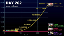 墨西哥甲型H1N1流感在疾病爆發(fā)的40多天后開始失控,第47天感染人數(shù)超過同時期SARS,第64天(85087人)超過爆發(fā)第55天的新冠病毒(77262人)。此后一發(fā)而不可收拾,到第600天時已造成6千萬人感染,29萬多人死亡,病死率0.5%。
