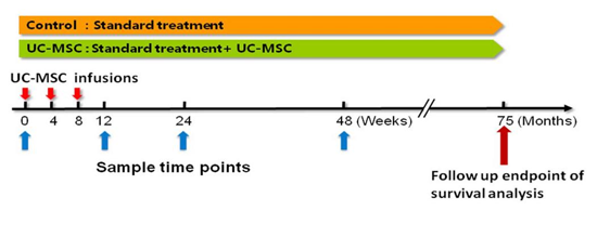 治療組每間隔4周輸注臍帶干細(xì)胞,共3次。同時(shí),兩組都接受常規(guī)治療,并接受隨訪。此次研究結(jié)果不僅和此前一樣令人滿意,也證實(shí)了臍帶干細(xì)胞的長(zhǎng)期效果。