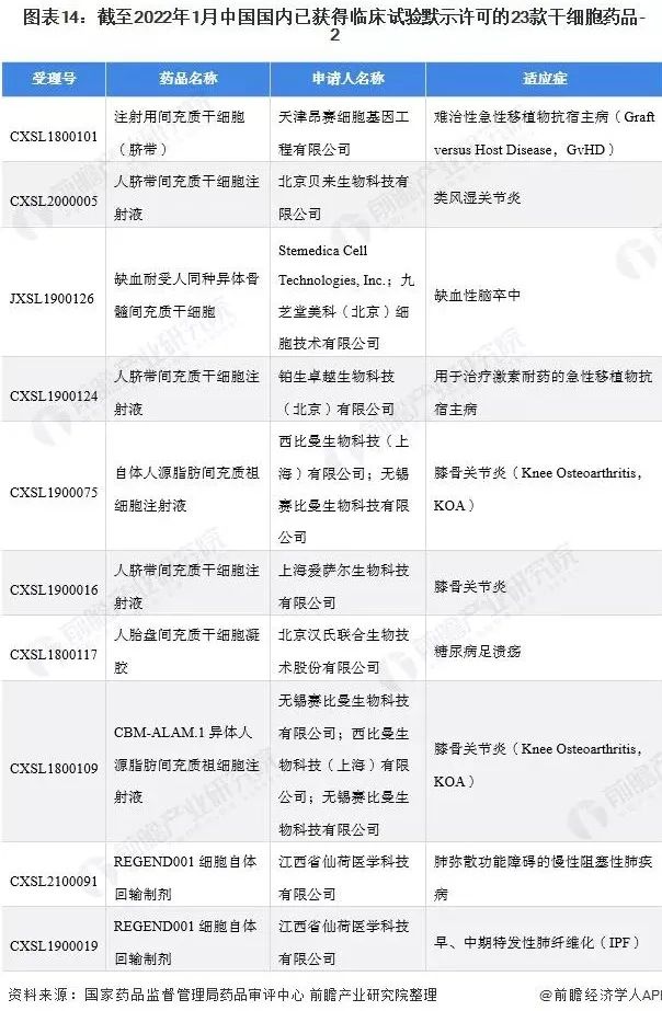 ◆ 23款干細胞藥物獲得臨床試驗默示許可
