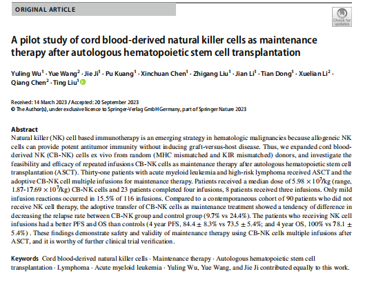干細胞應(yīng)用 2023--11-22 新生命-華西團隊證明 高劑量擴增臍帶血NK細胞治療血液腫瘤安… 近期,四川新生命干細胞科技股份有限公司(以下簡稱新生命干細胞公司)與四川大學(xué)華西醫(yī)院血液內(nèi)科研究團隊證明了來自多個隨機供體的高劑量體外擴增臍帶血來源NK(CB-NK)細胞產(chǎn)品的 2023--10-17 「被臍帶血救的第一人」,他換血重生 35 年! 本站是一個學(xué)習(xí)交流的平臺,網(wǎng)站上文章為轉(zhuǎn)載,如果原文沒有版權(quán)聲明,按照目前互聯(lián)網(wǎng)開放的原則,我們將在不通知作者的情況下,轉(zhuǎn)載文章;如果原文明 2023--07-20 404名自身免疫性疾病患者接受間充質(zhì)干細胞輸注的安全性分析 本站是一個學(xué)習(xí)交流的平臺,網(wǎng)站上文章為轉(zhuǎn)載,如果原文沒有版權(quán)聲明,按照目前互聯(lián)網(wǎng)開放的原則,我們將在不通知作者的情況下,轉(zhuǎn)載文章;如果原文明確注明“禁止轉(zhuǎn)載”,我們一 2023--03-28 四川臍血庫2023年2月臍帶血出庫簡報 成人(年齡≧18歲) 12人 救治患者年齡最大 57歲 體重最大患者 85公斤 2月出庫儲存年限最長的一份臍帶血達6年零6個月(2016.07.26- 2023.02.22),用于一位白血病患者的治療。 二、2023年2 2022--10-10 干細胞應(yīng)用:自體和異體的干細胞,哪個更好? 醫(yī)生從患者或捐贈者的骨盆骨中收集液體。然后將收集的液體骨髓加工,冷凍并儲存(如果是自體的),將供體的干細胞保存在庫中或用于移植治療。 脂肪采集 同種異體 ,也有獨特的 2022--09-28 間充質(zhì)干細胞治療正走向臨床應(yīng)用!四十九個干細胞臨床備案項目已… 在我國,干細胞按藥品、技術(shù)管理的雙軌制監(jiān)管。近年來,備案的干細胞臨床研究項目不斷增多,目前干細胞臨床研究備案機構(gòu)增至133家,備案項目達100個。新生兒臍帶組織是間充質(zhì)干細胞 2022--06-28 22篇文獻證實間充質(zhì)干細胞治療糖尿病足有益!傷口完全閉合率達82% 專家審核:江蘇大學(xué)附屬醫(yī)院 李晶 教授 糖尿病足潰瘍(DFU)是糖尿病的主要并發(fā)癥之一。糖尿病足國際工作組將糖尿病足定義為糖尿病患者踝部以下的全層傷口,與糖尿病神經(jīng)病變和外周動 2021--10-20 《PNAS》:NK細胞不僅能防癌,亦可阻止帕金森病惡化 帕金森?。≒arkinson’s disease,PD)又名震顫麻痹,是一種常見的神經(jīng)系統(tǒng)變性疾病,在老年人群中多見。目前認(rèn)為發(fā)病原因與大腦中多巴胺神經(jīng)元內(nèi)一種名為α-突觸核蛋白(α-Syn)相關(guān)。左 2021--09-18 回輸干細胞,讓您和失眠說再見! 2020年10月底,中國睡眠研究會調(diào)查顯示,中國成年人失眠發(fā)生率高達38.2%,平均每3人中就有1人失眠!這些人群中,以90后、95后、00后為代表的年輕人的睡眠問題最為突出。對于工作不到一年 2021--09-08 華西醫(yī)生是怎么用“臍帶”治病的?孕媽最好提前了解 每當(dāng)提到干細胞,普通人總是忍不住發(fā)出靈魂三問:干細胞是啥?從哪兒來?真的有醫(yī)院用嗎?特別是已經(jīng)懷孕的媽媽,更是天天糾結(jié):“一輩子只有一次機會,我們家到底存不存啊?”利 第一頁 上一頁 1 2 3 4 5 6 7 8 下一頁 最后一頁