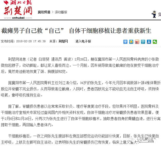 干細(xì)胞應(yīng)用 2018--08-02 臍帶血只能治白血病?它未來(lái)的用途可能讓我們眼花繚亂 臍帶血是一種寶貴的醫(yī)療資源,已獲得醫(yī)學(xué)界的廣泛認(rèn)同,保留臍帶血也成為人們津津樂(lè)道的話題。然而在大眾心目中,臍帶血似乎只能治療血液疾病,甚至于將臍帶血只同治療白血病聯(lián)系 2018--05-24 7周內(nèi)臍帶血移植幫助罕見(jiàn)絕癥Krabbe病患兒 常染色體隱性遺傳研究目的:觀察早期克拉伯病患兒在7周齡內(nèi)接受造血干細(xì)胞移植的長(zhǎng)期預(yù)后。近期,一項(xiàng)治療克拉伯病的臨床研究結(jié)果表明,在出現(xiàn)癥狀之前進(jìn)行干預(yù)是最有效的手段,并 2018--05-18 足球明星的福音,脂肪干細(xì)胞有望修復(fù)受損肌腱 近期在亞冠小組賽主場(chǎng)與日本鹿島鹿角的比賽中,上海申花先贏后平。2:2的結(jié)果,使得申花已經(jīng)提前小組出局。然而對(duì)于申花來(lái)說(shuō),本場(chǎng)比賽最大的損失是外援中鋒馬丁斯的受傷。 比賽 2018--05-08 父母給孩子存臍帶血真的有用嗎? “人生是殘酷的,對(duì)于生命的長(zhǎng)度,它不能像買(mǎi)菜一樣可以討價(jià)還價(jià),我們有時(shí)所能做的只能是默默的去承受。每個(gè)人都有屬于自己的寒冬,它終究不可避免。未來(lái)既然深不可測(cè),難以掌握 2018--03-15 間充質(zhì)干細(xì)胞治療脊髓損傷又傳出喜訊! 根據(jù)荊楚網(wǎng)報(bào)道,今年2月,一名34歲的高位截癱患者在接受自體干細(xì)胞移植手術(shù)后,恢復(fù)了頸、胸腹部知覺(jué)。這名患者因車(chē)禍致頸3-頸4椎體骨折脫位并脊髓不完全損傷,傳統(tǒng)康復(fù)治療手段 2018--03-13 廣東上演生死時(shí)速,為兒子儲(chǔ)存的臍帶血挽救了大體重爸爸 5年前,廣東的王先生(化名)夫婦喜得貴子,并將兒子的臍帶血保存下來(lái)。沒(méi)想到5年后,兒子的這份臍帶血在關(guān)鍵時(shí)刻成了他的救命血,為他帶來(lái)生的希望。 今年46歲的王先生, 2018--03-01 西南首位“干細(xì)胞寶寶”在成都誕生 汪成孝教授在指導(dǎo)研究人員工作臍帶間充質(zhì)干細(xì)胞治療卵巢早衰項(xiàng)目已取得階段性成果 僅僅完成輸注一個(gè)療程的臍帶來(lái)源間充質(zhì)干細(xì)胞,2017年7月,成都一位卵巢早衰病人楊女士就 2018--03-01 臍帶血移植治療罕見(jiàn)病,康復(fù)15年后找到救命恩人 據(jù)每日郵報(bào)報(bào)道,一位名叫Anthony的紐約男孩找到了15年前的救命恩人。這是一對(duì)母子,Anthony全靠他們保留的臍帶血才活了下來(lái), 避免了夭折的命運(yùn)。2002年12月,被確診患有嬰兒惡 2018--01-30 從科研到臨床,臍帶間充質(zhì)干細(xì)胞風(fēng)頭正勁 近日,重慶醫(yī)科大學(xué)附屬第二醫(yī)院急救部采用創(chuàng)面修復(fù)中一種先進(jìn)的“干細(xì)胞治療術(shù)”救治了一名年近七旬患有糖尿病足的老人,這是繼南京鼓樓醫(yī)院生殖醫(yī)學(xué)中心采用臍帶間充質(zhì) 2018--01-30 十六分之一的機(jī)會(huì),廣東媽媽為獲臍帶血救女冒險(xiǎn)懷孕 1月中旬,廣東肇慶的莫女士來(lái)到肇慶市第二人民醫(yī)院給院方送上錦旗和感謝信,這源于3年前,院方成功采集了莫女士?jī)鹤拥哪殠а?,而正是這份珍貴的臍帶血,挽救了她飽受8年重型地中 第一頁(yè) 上一頁(yè) 1 2 3 4 5 6 7 8 下一頁(yè) 最后一頁(yè)
